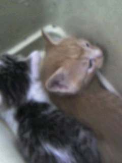 ぴょ~んと壁を越えていきました。多分、その時に三毛ちゃんは親猫さんにくわえられていったのではないかと…。