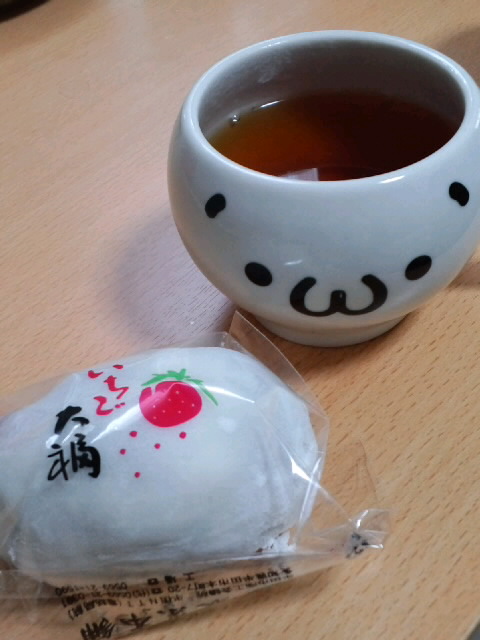 いちご大福。…写真のは4Lサイズのいちごが入ったずっしり重たいいちご大福!ジューシーで大満足